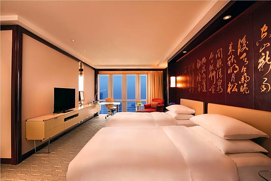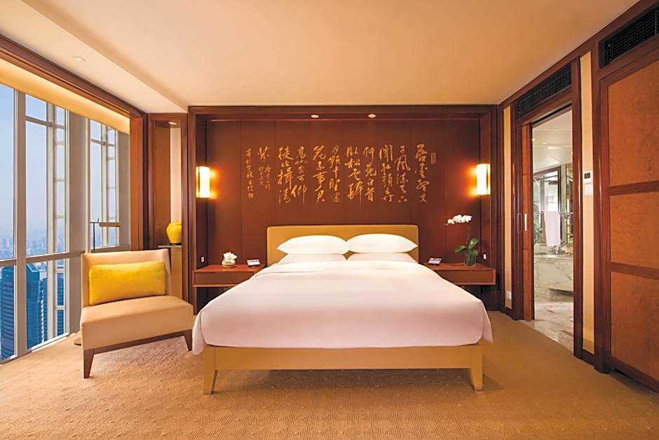 Spectacular views of the Pudong skyline welcome guests to this 65 sq m (700 sq ft) suite that offers elegant art deco design, a separate seating area and a king bed with a feather down duvet. Exclusive amenities include a generous work area, wireless Internet access, a marble bath with robes, a high-pressure shower tower and a separate deep-soaking bathtub. Suite includes Grand Club accommodations on a private concierge floor.